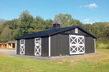 Standard features of our LP SmartSide Classic Dutch Barns include a set of double doors with locking door handle. Buildings up to 10 feet in length have one window with a screen and buildings 12 feet and longer have two windows with screens and Z pattern shutters. 8' wide sheds have a 4'6" door opening, 10' wide sheds have a 5' door opening, and 12' wide sheds have a 6' door opening. Doors and windows can be placed according to customer's request. Classic Dutch Barn models feature 76" walls, large windows, wooden shutters and vents.